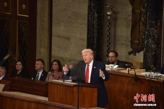 当地时间2月24日晚,美国总统特朗普在国会参众两院联席会议上发表国情咨文讲话,聚焦经济、移民等议题。这是特朗普在本总统任期内首次发表国情咨文。 中新社记者 沙晗汀 摄